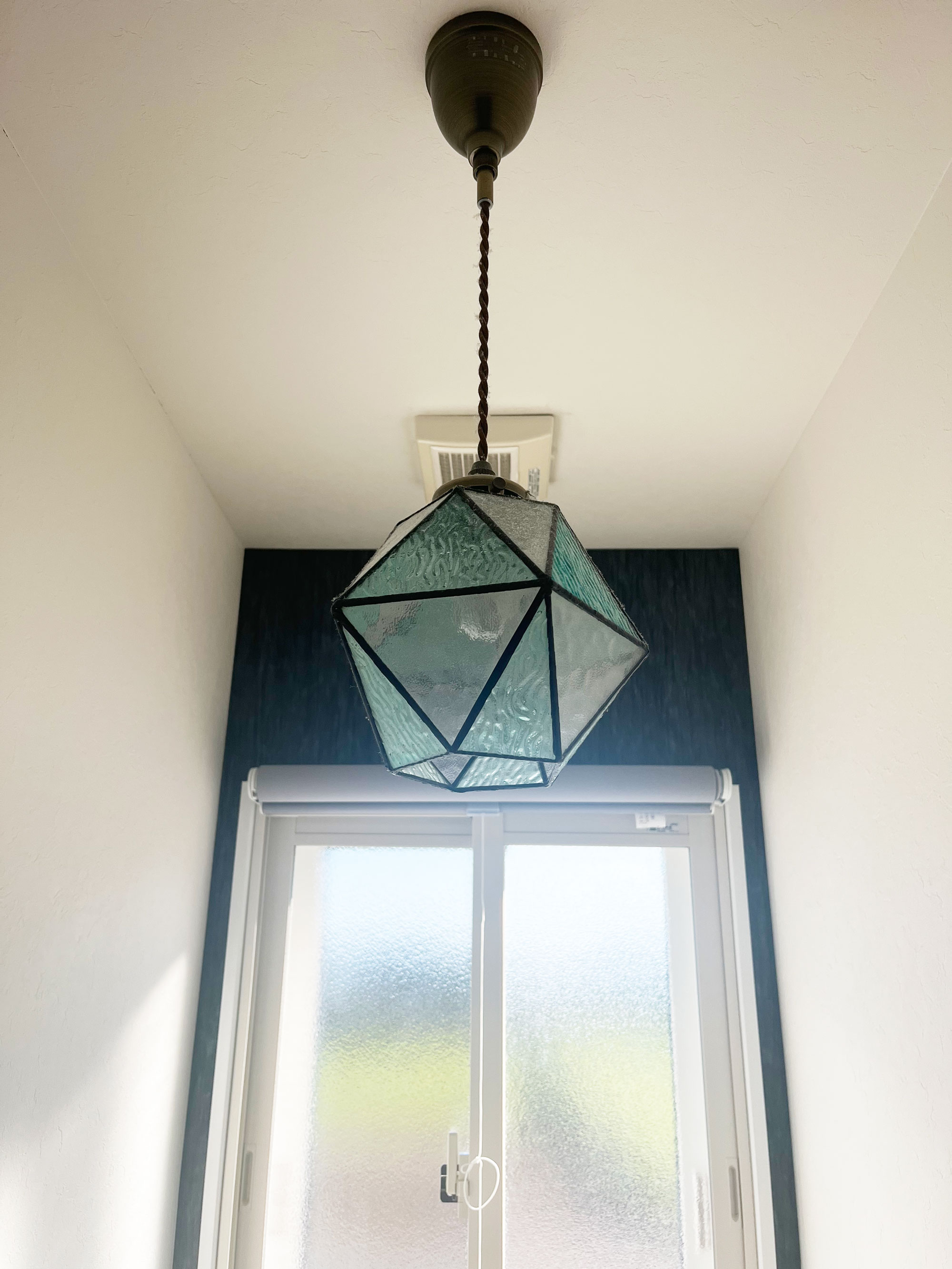 透明な窓にした理由は・・・外からペンダントライトが見えるようにするため!