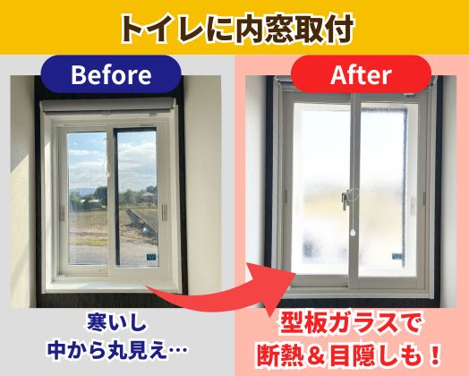 寒いし中からも丸見えだし、内窓をつけるなら絶対トイレも!と前々から思っていました。