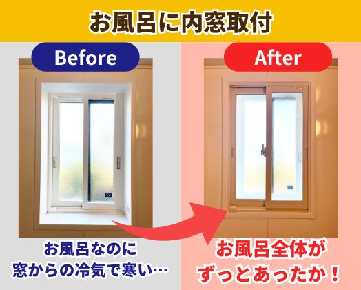 先に効果を言っちゃうとですね、お風呂は特に内窓をつけて本当に良かったです!