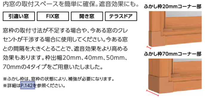 基本的には窓の四方(上下左右)に取付けますが、窓の納まり方によっては三方ふかし枠となります。