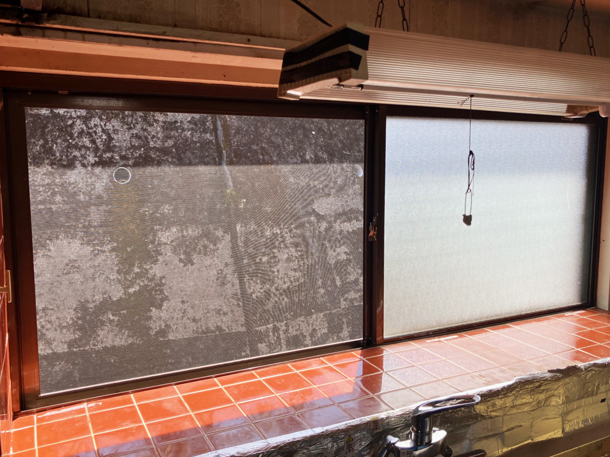 台所の引違いの腰窓の外額縁に段差が!!