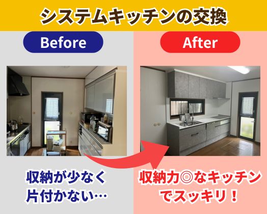今回のように別のお悩みがある場合は新しいキッチンへの交換がオススメです。
