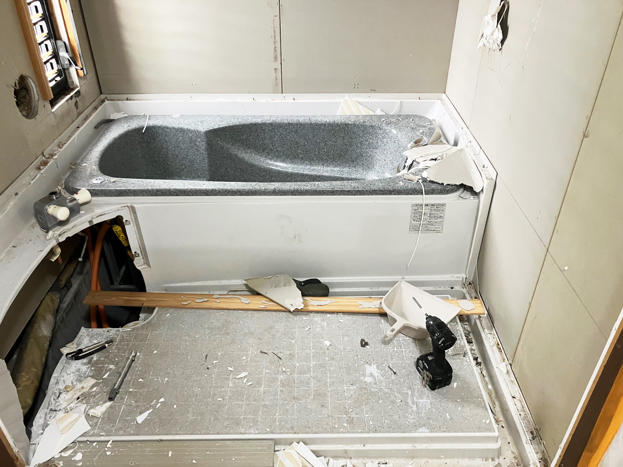 詳しく拝見すると、元々システムバス(ユニットバス)だったのですが壁パネルに断熱材がなく、脱衣所も壁紙などが劣化していて確かに冬は寒そうな浴室・脱衣所でした。