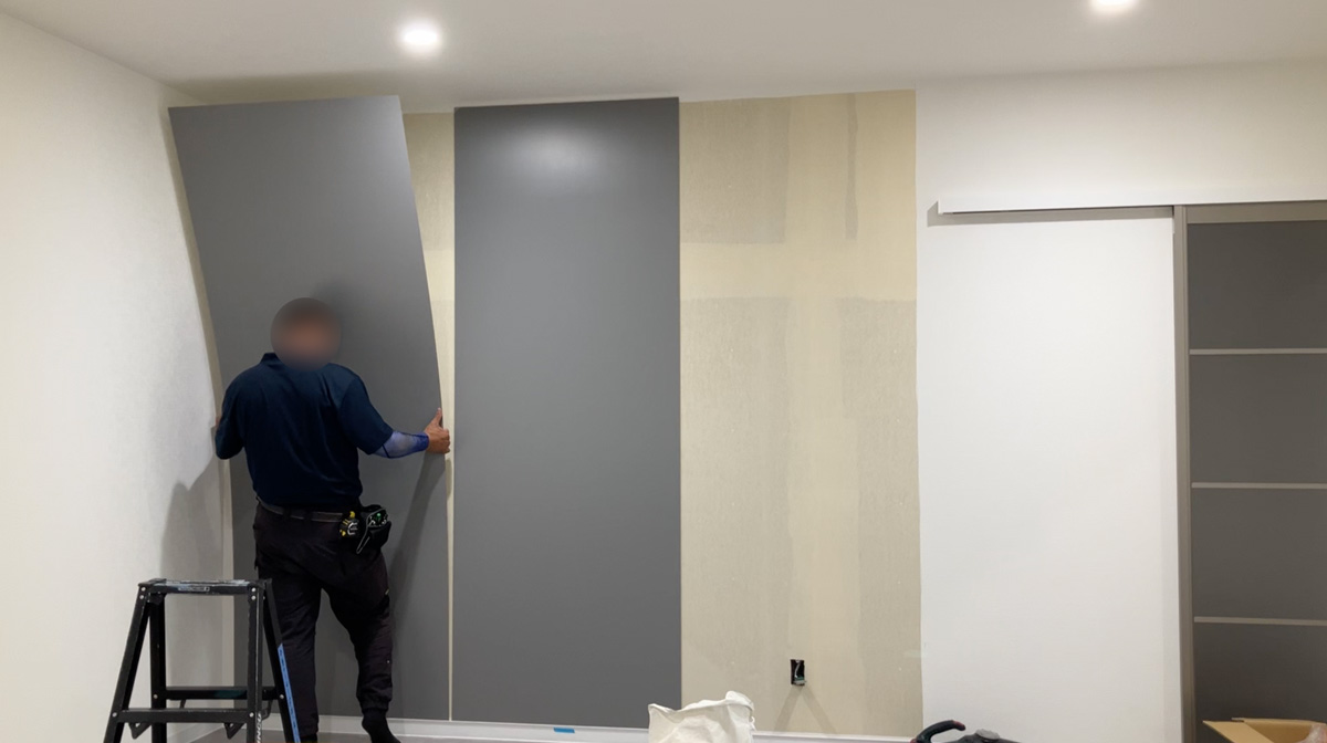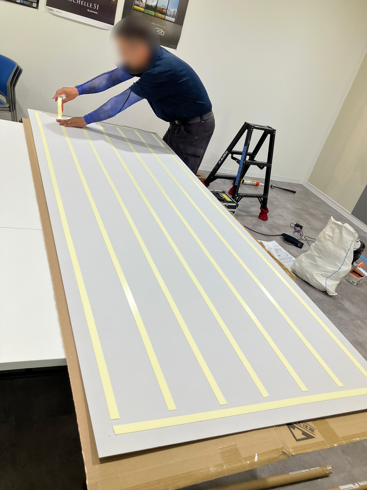 ④壁パネル裏面に両面テープ、接着剤を塗布
