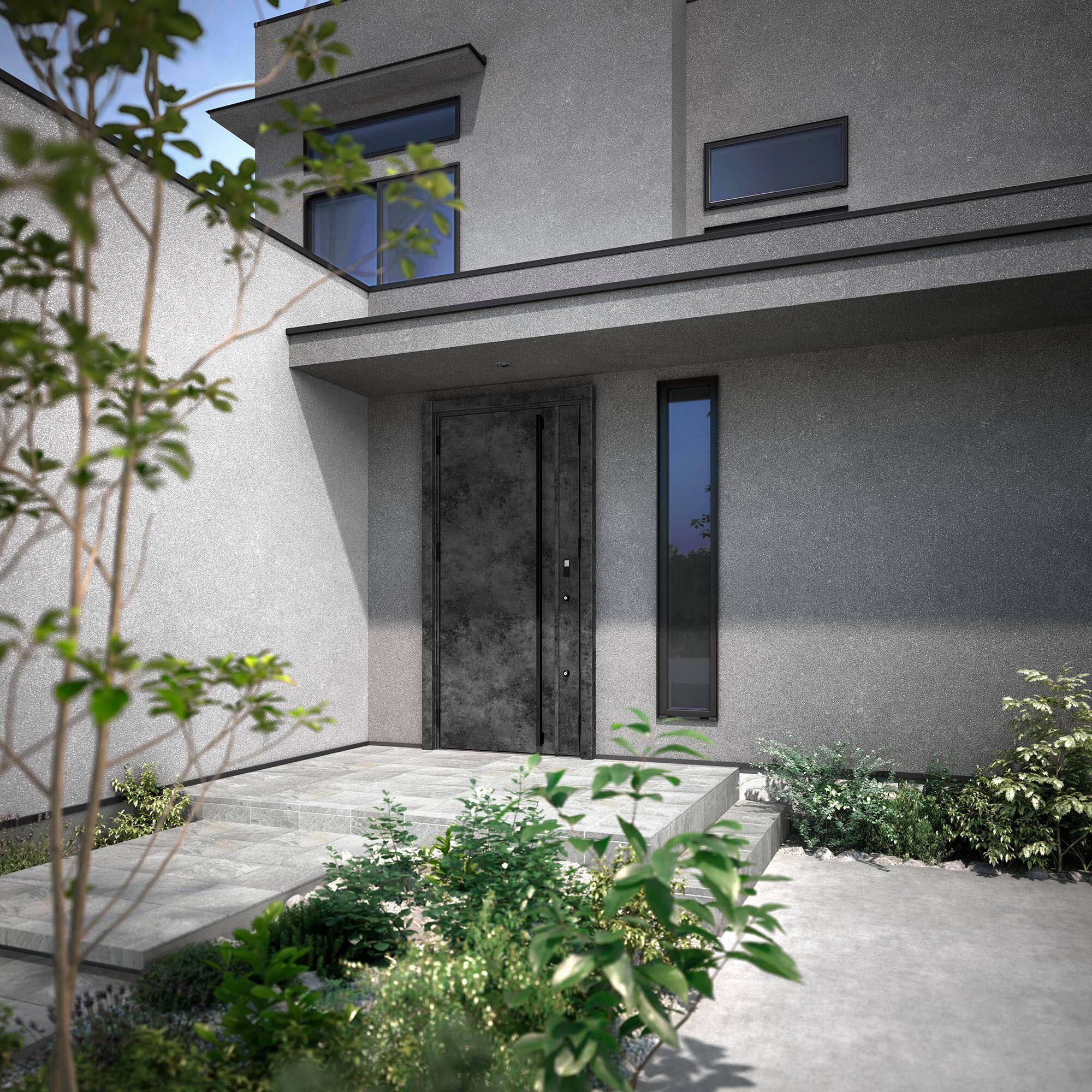 ▲LIXIL リシェント玄関ドア XEモデル(20A型 ブリュームメタルグレー)
